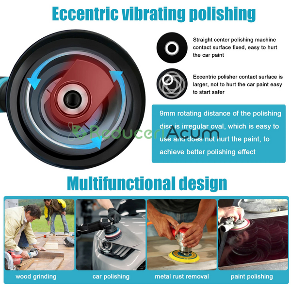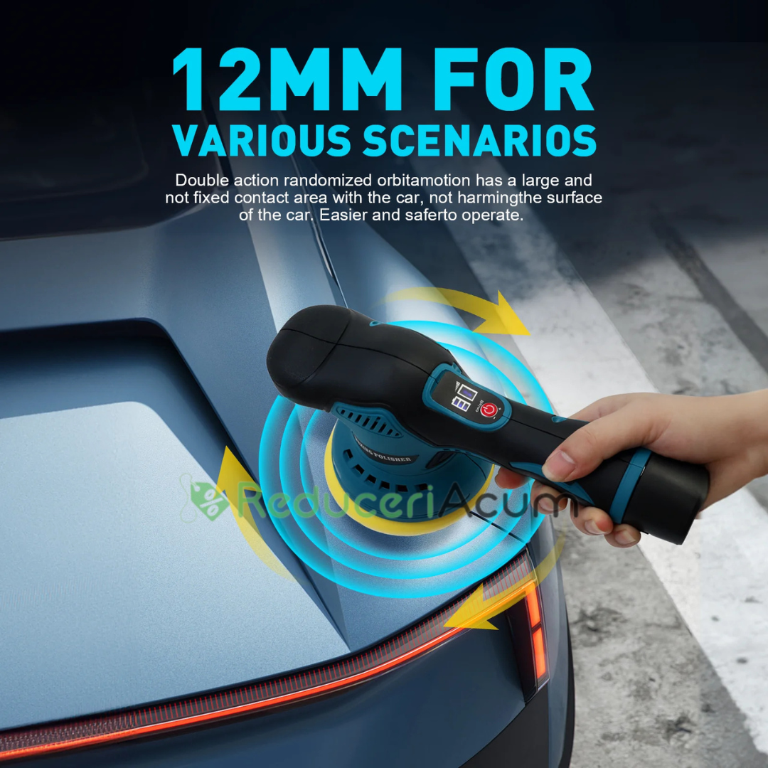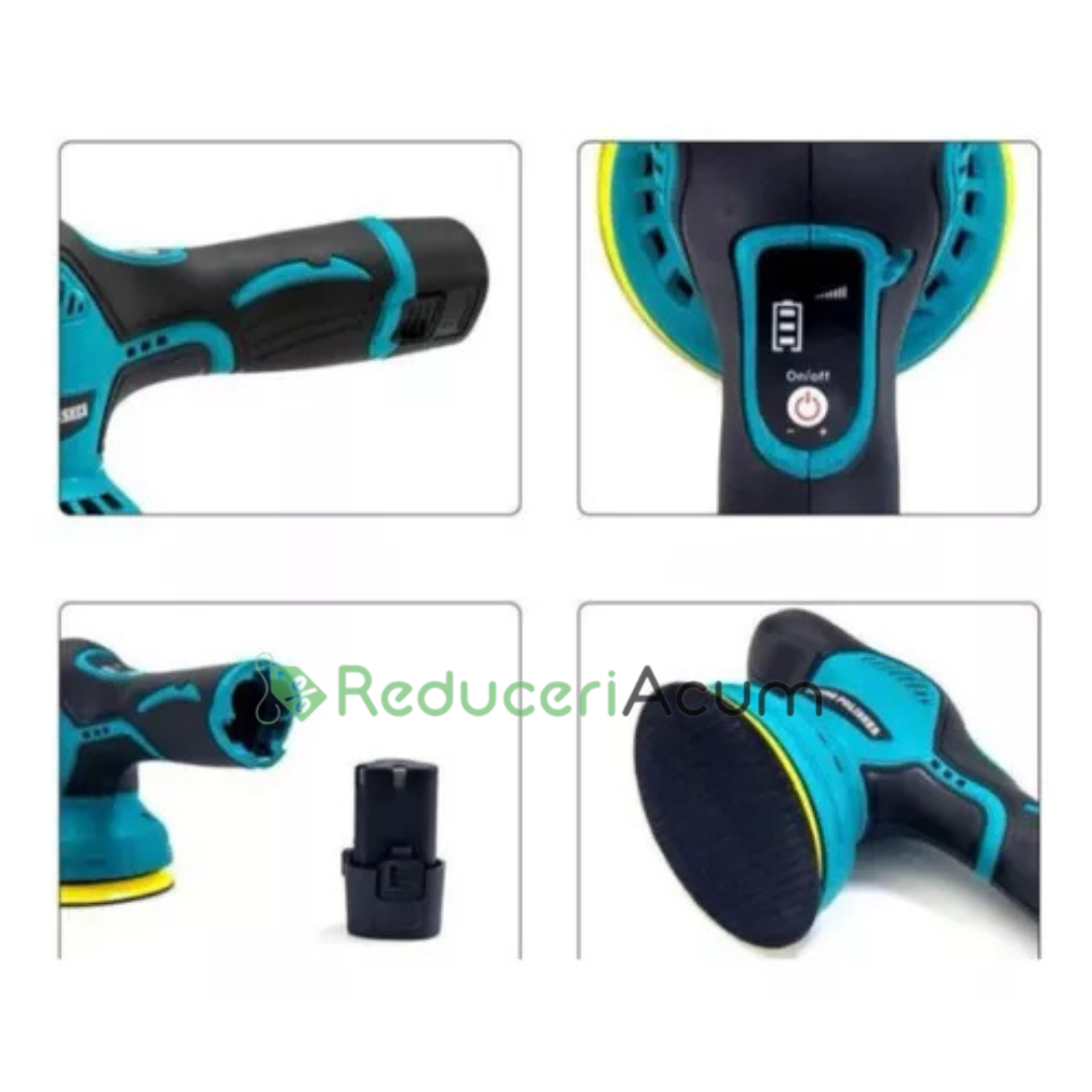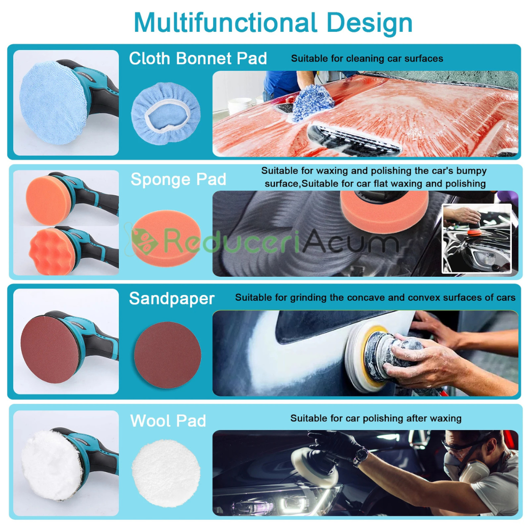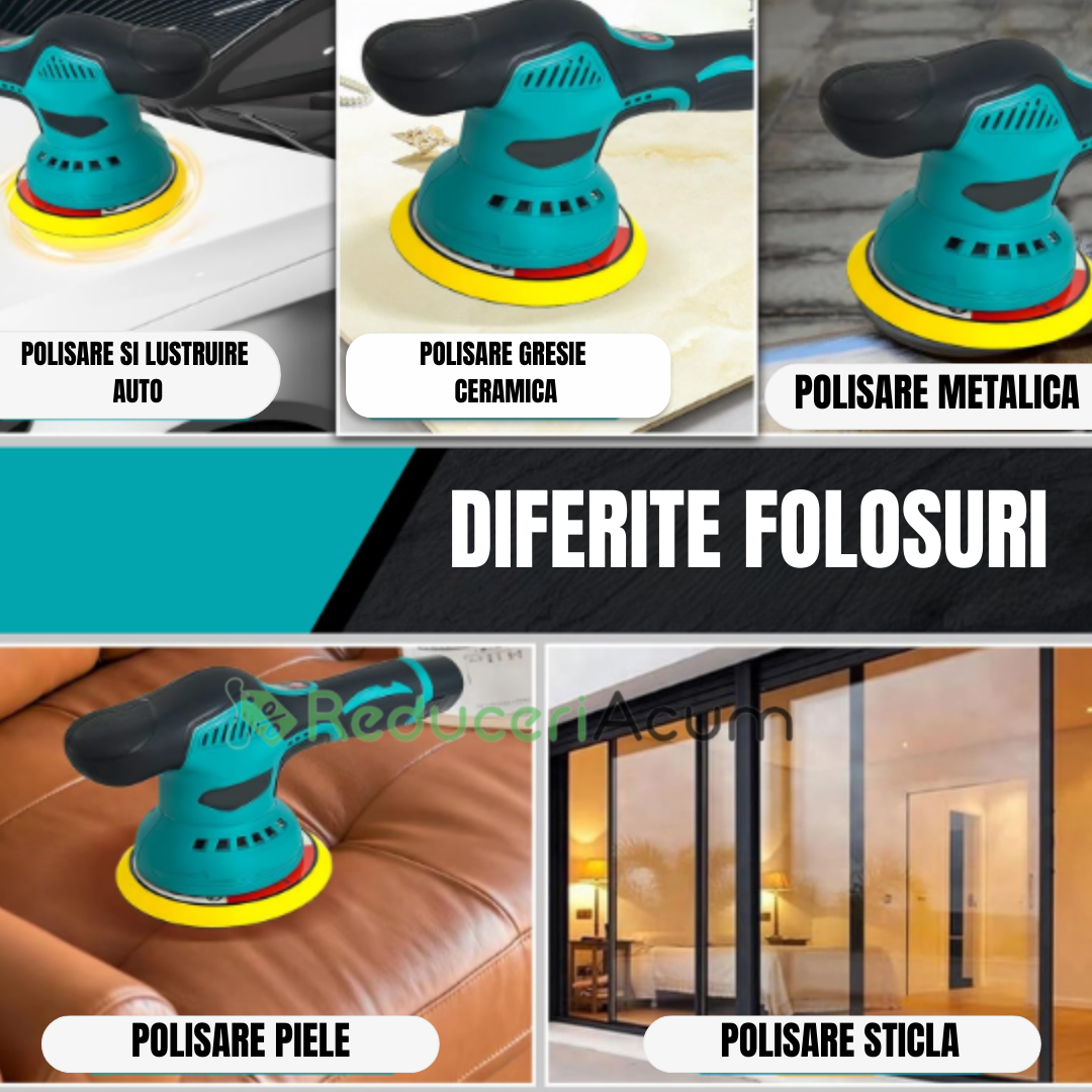 Fierăstrău de polisat și lustruit auto fără fir 36V – Mașină duală de polisat cu acumulatori și pad-uri pentru ceruire