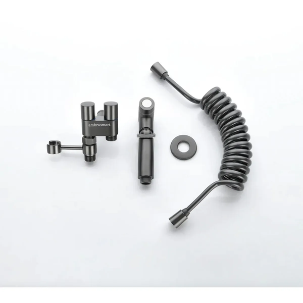 Setul include un cap de duș manual elegant, fabricat din oțel inoxidabil durabil pentru a asigura rezistența la uzură și coroziune, un furtun spiral flexibil care oferă acces ușor și mobilitate, precum și un suport robust montat pe perete pentru o fixare optimă.