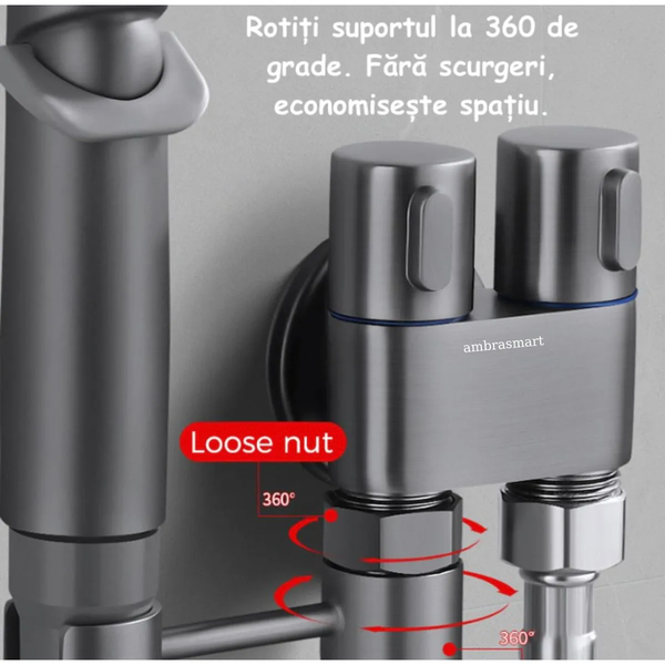 Acest duș se remarcă prin posibilitatea de reglare a presiunii apei, permițând utilizarea unui jet delicat și confortabil sau a unui jet mai puternic pentru o curățare eficientă. Este ideal nu doar pentru igiena personală, ci și pentru curățarea toaletei, a zonelor din jurul băii sau chiar pentru udarea plantelor și spălarea obiectelor mici de uz casnic.
