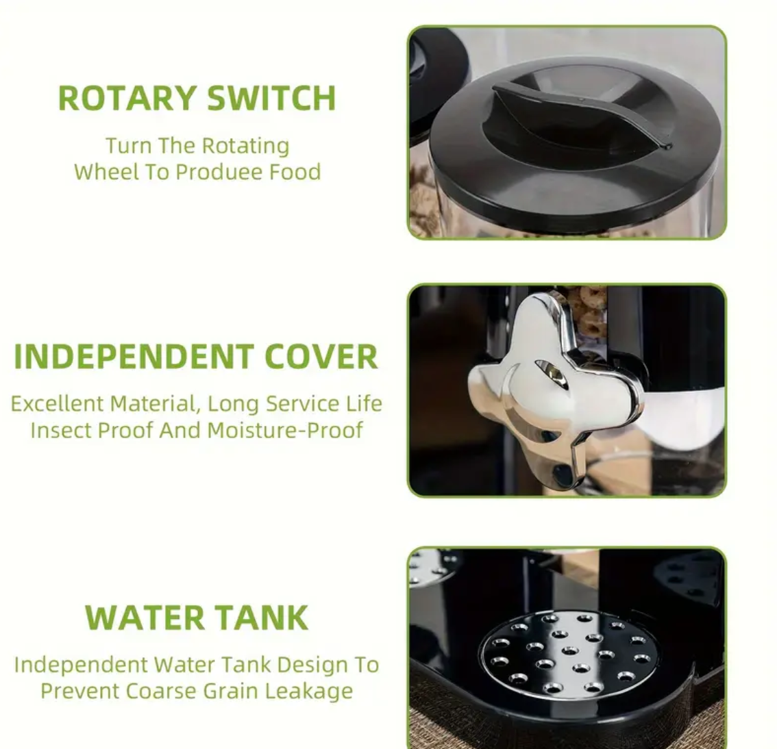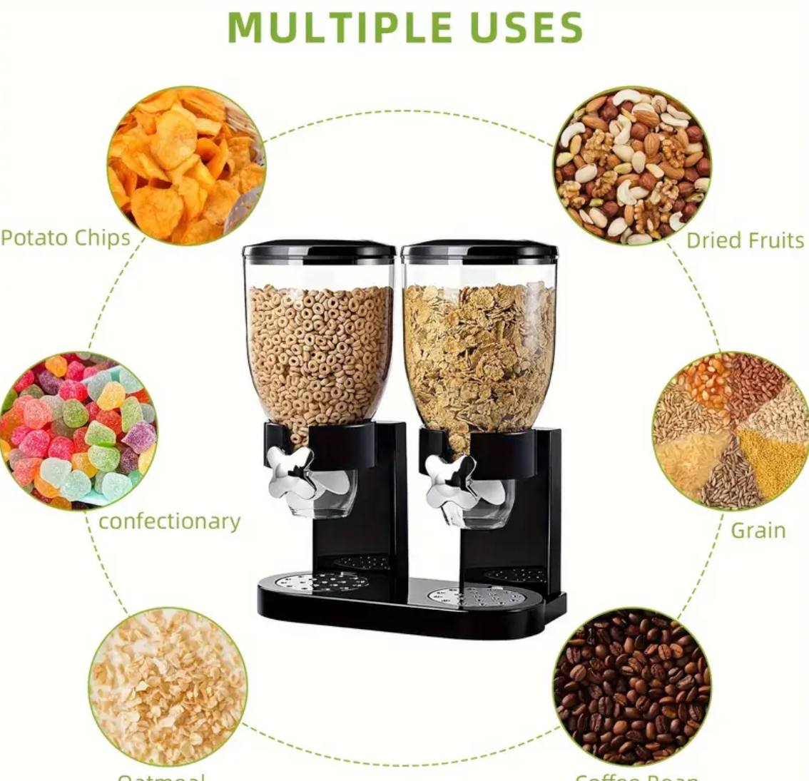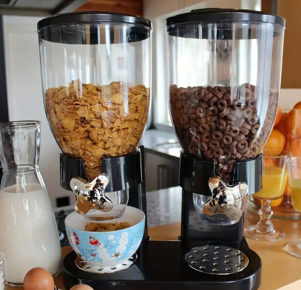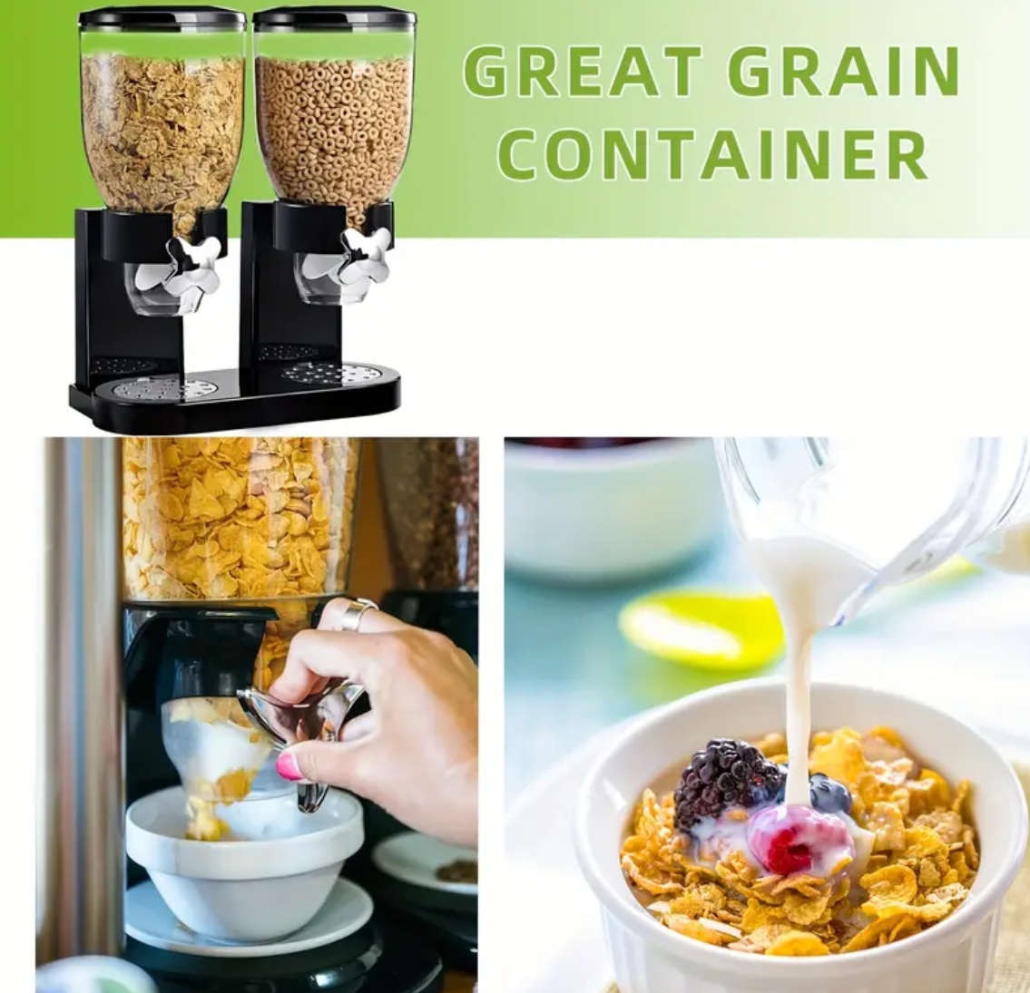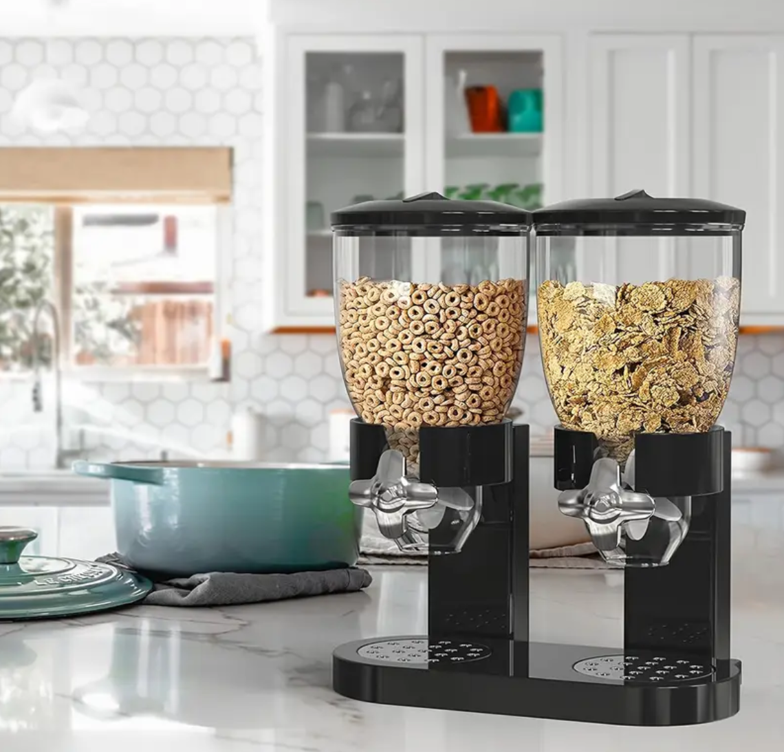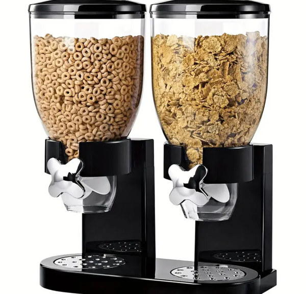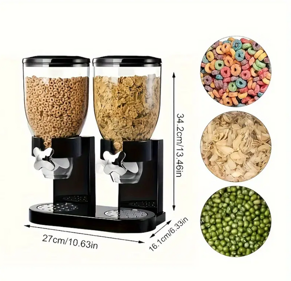 Investește într-o soluție practică și modernă pentru depozitarea alimentelor și bucură-te de prospețime zilnică cu dozatorul dublu pentru cereale!