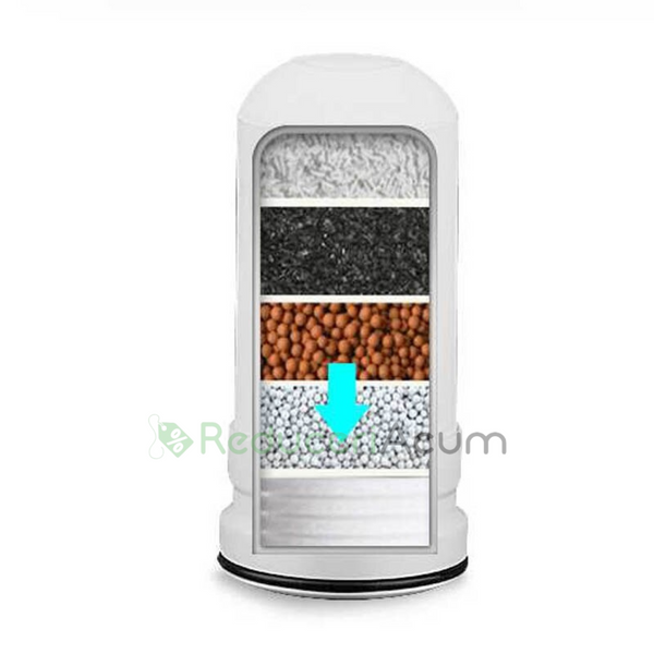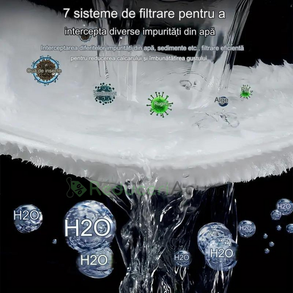 - Filtrul contine carbune activ, care indeparteaza si blocheaza clorul, arsenul, pesticidele etc.