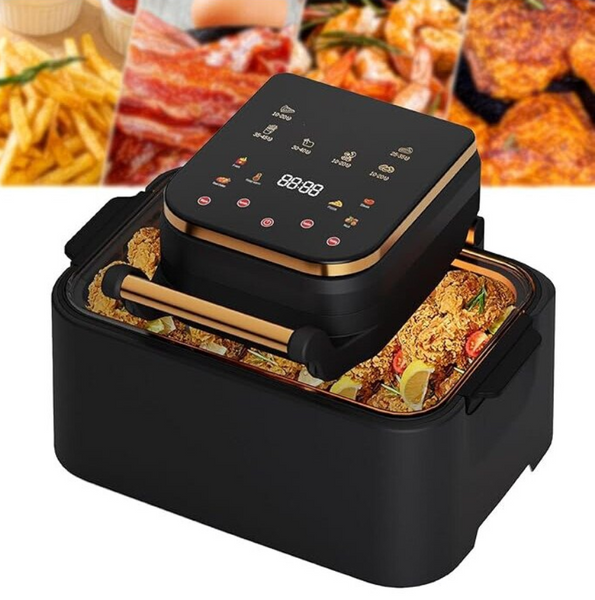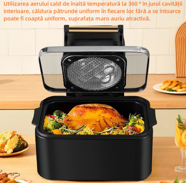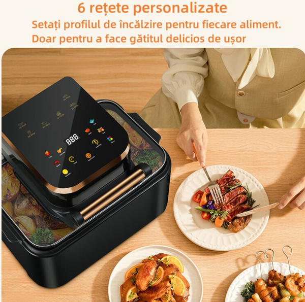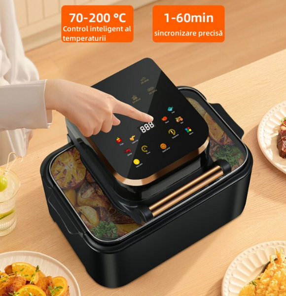 Elegantă și practică, friteuza cu aer cald de 12L devine un ajutor indispensabil în bucătărie, transformând fiecare masă într-o experiență sănătoasă și delicioasă pentru toată familia.
