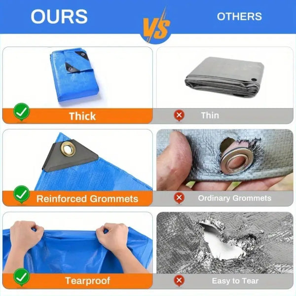 1+1 GRATIS Prelată Albastră Dublă, Rezistentă - Acoperire Mare, Flexibilă, Impermeabilă și Rezistentă la Rupere pentru Cort Exterior, cu Găuri Metalice Întărite, Husă de Protecție Multifuncțională pentru Fermă, Camping, Mobilier de Curte, Echipamente Esențiale de Camping, Construcție Durabilă.