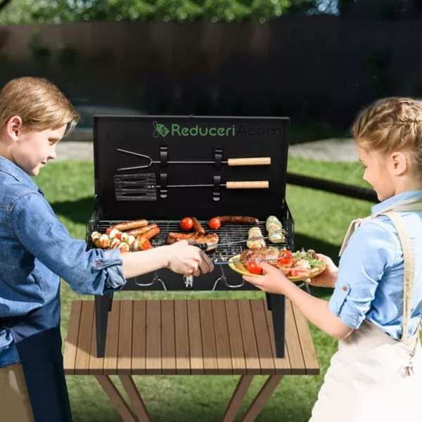 Gratar portabil, pliabil, tip Diplomat, Accesorii gratar incluse