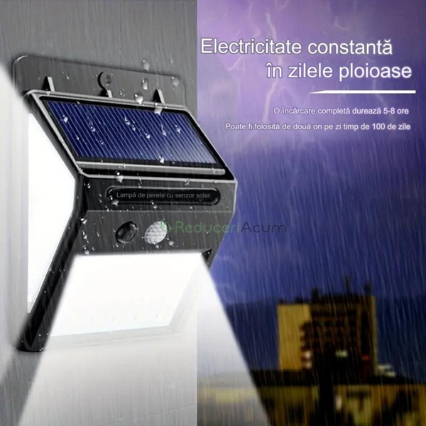 LAMPA SOLARA CU 30 LEDURI CU PUTERE MARE DE LUMINARE IN 3 MODURI
