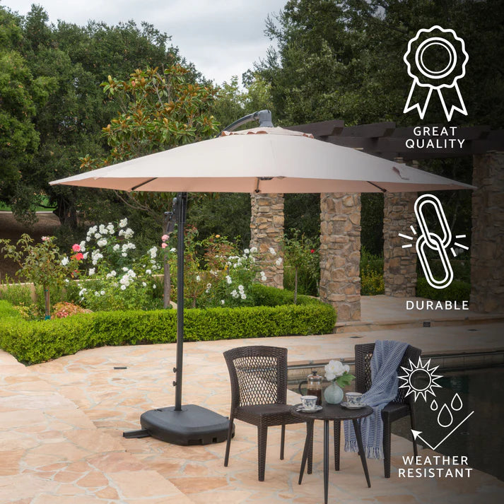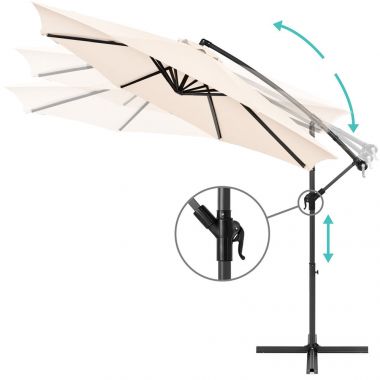 Umbrela suspendată este un element preferat al verii, aducând cu ea o atmosferă mediteraneană și oferind o umbră plăcută și relaxantă. Este ideală pentru utilizarea în grădină, pe terasă, pe balcon sau pe malul mării, fiind un element de nelipsit în vacanțele tale exotice.