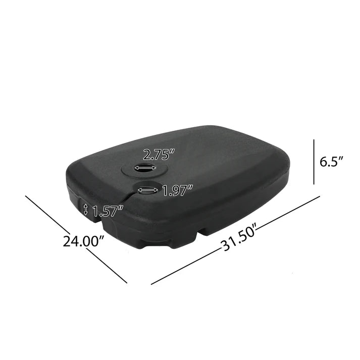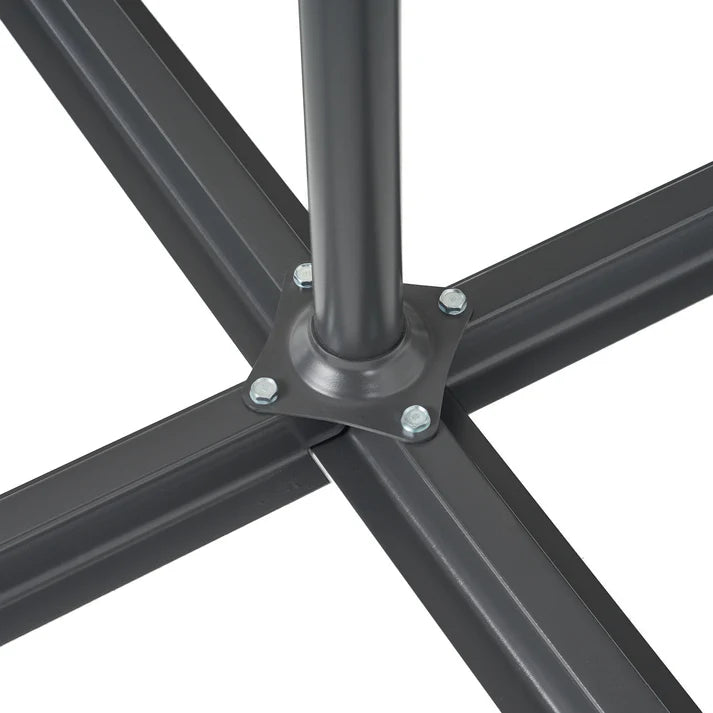 Umbrela are un diametru de 5 cm și o greutate de 10,6 kg, fiind solid ancorată în sol. Pachetul conține umbrela suspendată cu cadru metalic, talpi din metal, suruburile și șaibele necesare asamblării, precum și o cheie hexagonală pentru montaj.