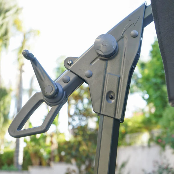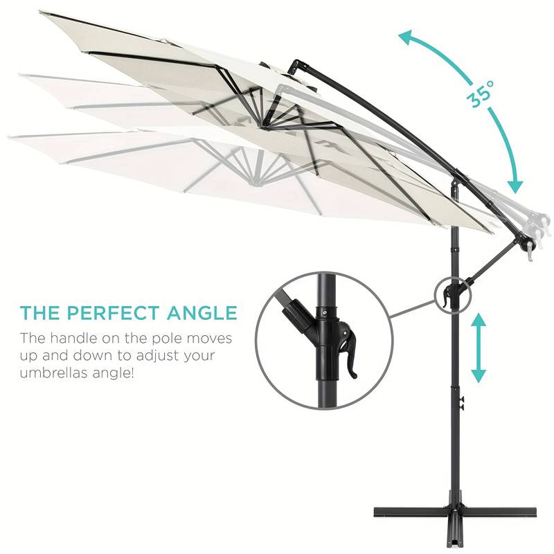 Construită cu grijă, cadrul și piciorul metalic asigură o stabilitate maximă, iar materialul din poliester al umbrelei oferă protecție împotriva radiațiilor UV. Deschiderea umbrelei este simplă, prin rotirea manivelei manuale, iar unghiul de înclinare reglabil permite ajustarea pentru a maximiza gradul de umbrire dorit.