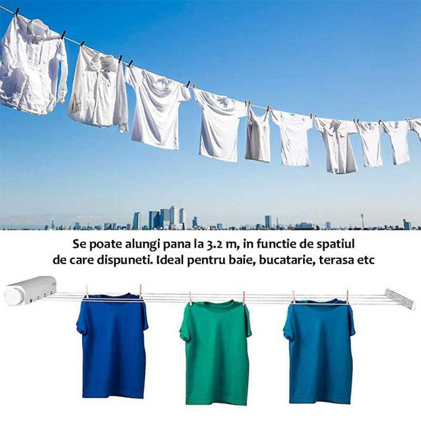 - Cu sistem retractabil, cele 4 sfori pentru uscarea rufelor pot fi stranse foarte usor.