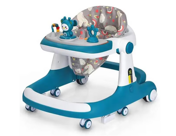 Design robust și sigur: Construit cu o bază lată și stabilă și materiale robuste pentru a preveni răsturnarea, asigurând siguranța bebelușului în timp ce se mișcă.