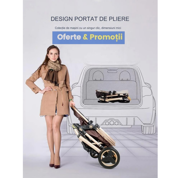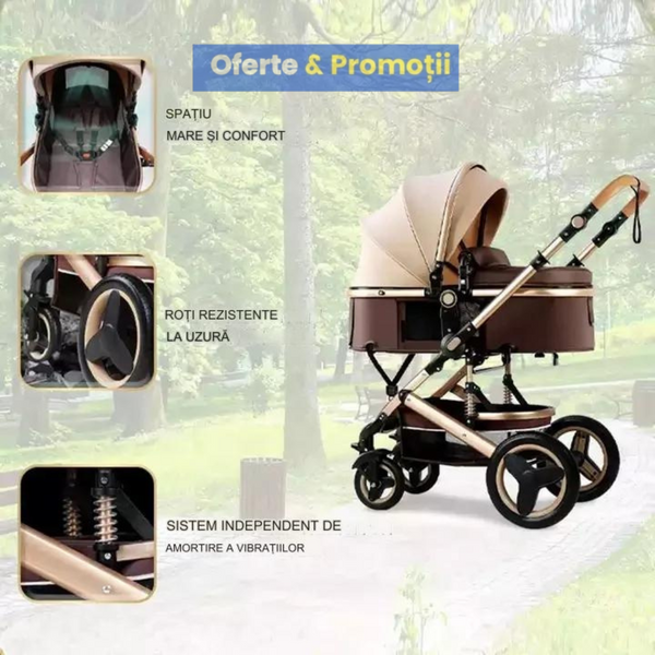 Cărucior Bebe 2 în 1 - Eleganță, Confort și Funcționalitate Premium