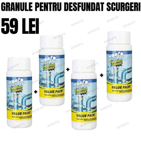 Vă prezentăm granulele de desfundat scurgeri, soluția rapidă și eficientă pentru problemele de blocare a conductelor. Aceste granule sunt formulate special pentru a dizolva blocajele cauzate de grăsimi, păr și alte reziduuri care pot afecta performanța scurgerilor. Utilizarea lor este simplă: turnați granulele în scurgere, adăugați apă conform instrucțiunilor, și lăsați produsul să acționeze. Granulele se dizolvă rapid, curățând conductele și restabilind fluxul normal al apei. Ideal pentru utilizare în băi, bucătării și orice altă zonă cu probleme de scurgere. Alegeți granulele noastre pentru o soluție eficientă și ușoară în întreținerea sistemului de canalizare. Mulțumim!