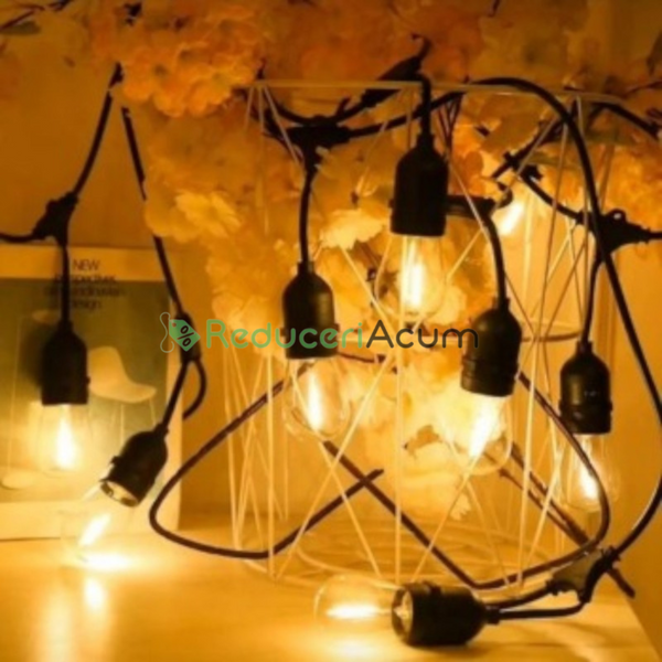 De obicei, aceasta include o serie de becuri mici, eficiente energetic, adesea LED, aranjate într-o linie dreaptă sau ușor curbată. Aceste ghirlande sunt ideale atât pentru utilizare în interior, cât și în exterior, fiind perfecte pentru iluminarea spațiilor precum balcoanele, grădinile, terasele sau locațiile de evenimente. Designul liniar asigură o distribuție uniformă a luminii, adăugând o atmosferă caldă și plăcută