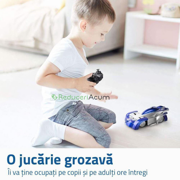 Masinuta "Wall Climber" impresioneaza prin functia sa de deplasare atat pe suprafata orizontala cat si pe pereti, tavan si alte suprafete inclinate. Masinuta "Wall Climber" este echipata cu un sistem de aspirare avansat ce ii permite sa creeze si sa mentina un fel de "vid" intre ea si suprafata pe care se afla, ramanand astfel atasata de aceasta. Se manevreaza usor prin radiocomanda cu infrarosu si are o baterie reincarcabila inclusa.