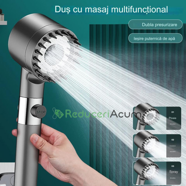 Para de dus de inalta presiune, 3 functii diferite si perie atasata
