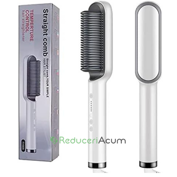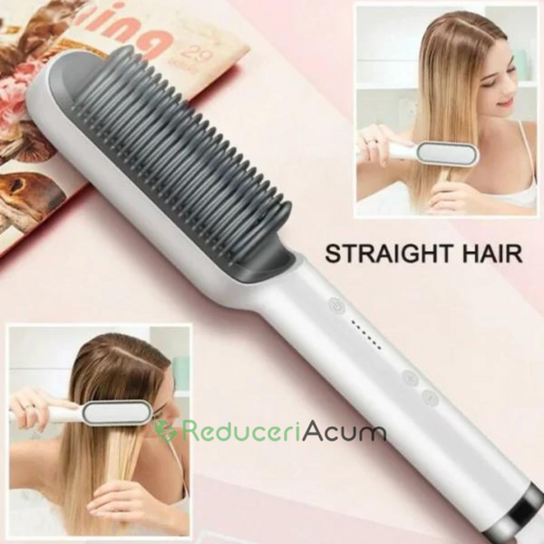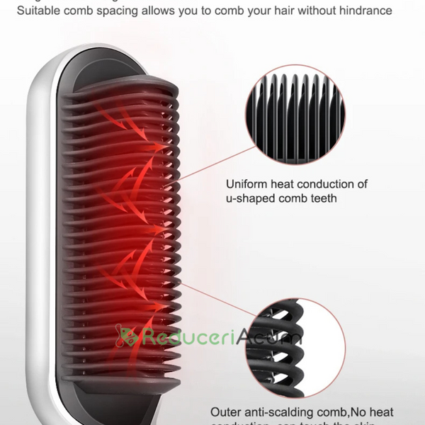 ÎNCĂLZIRE PTC și PERIAT DINȚI 3D: Peria de îndreptat părul combină un pieptene de îndreptat și un fier plat pentru a vă ajuta să obțineți un păr super drept dintr-o singură mișcare, cu periajul dinților 3D și tehnologia de încălzire PTC, căldura este uniformă și reduce căldura cu 50% Deteriorări, pentru rezultate de calitate la salon, fără încrețire.