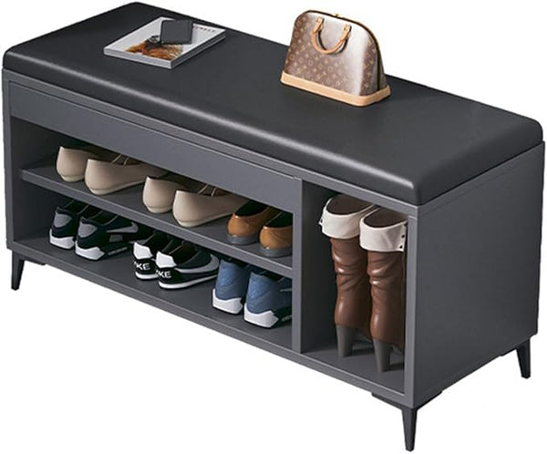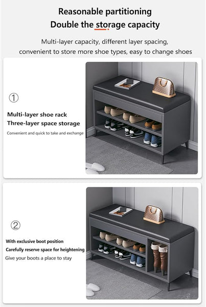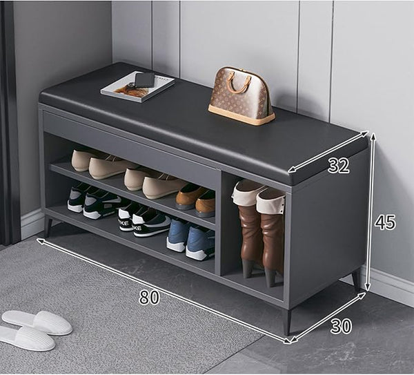 Un "raft orizontal pentru încălțăminte cu bancă" este o piesă de mobilier versatilă și practică, concepută pentru organizarea încălțămintei și oferirea unui loc confortabil pentru a te așeza. Acesta dispune de mai multe rafturi horizontale pe care încălțămintea poate fi aranjată într-un mod ordonat, oferind acces ușor și vizibilitate. Banca, care de obicei este plasată deasupra raftului, oferă un loc unde poți să te așezi și să îți pui sau să îți dai jos încălțămintea confortabil. Acest tip de raft pentru încălțăminte cu bancă este perfect pentru holuri, coridoare sau dormitoare, unde optimizarea spațiului și funcționalitatea sunt esențiale. Combinația dintre depozitare și loc de șezut face din aceasta o soluție convenabilă și stilată pentru casele cu spațiu limitat.